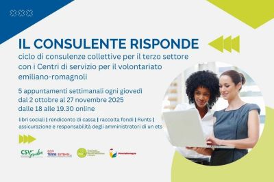 “Il consulente risponde”: al via il secondo ciclo di consulenze collettive per il terzo settore con i Centri di servizio per il volontariato emiliano-romagnoli